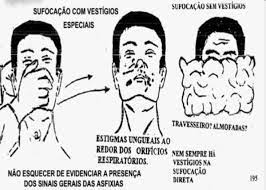 Ainda, se a EQUIMOSE foi localizada próxima das narinas e da boca, pode-se pensar em SUFOCAÇÃO DIRETA POR OBSTRUÇÃO DOS ORIFÍCIOS RESPIRATÓRIOS.